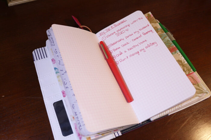 We break our goals down into categories, so we review them category by category and decide what we want to adjust or set fresh. For example, we always set reading goals. So we talk through how we did last year, which books we loved, what didn’t work, and what we want to change moving forward. As we talk, we write down the new goals for the year.