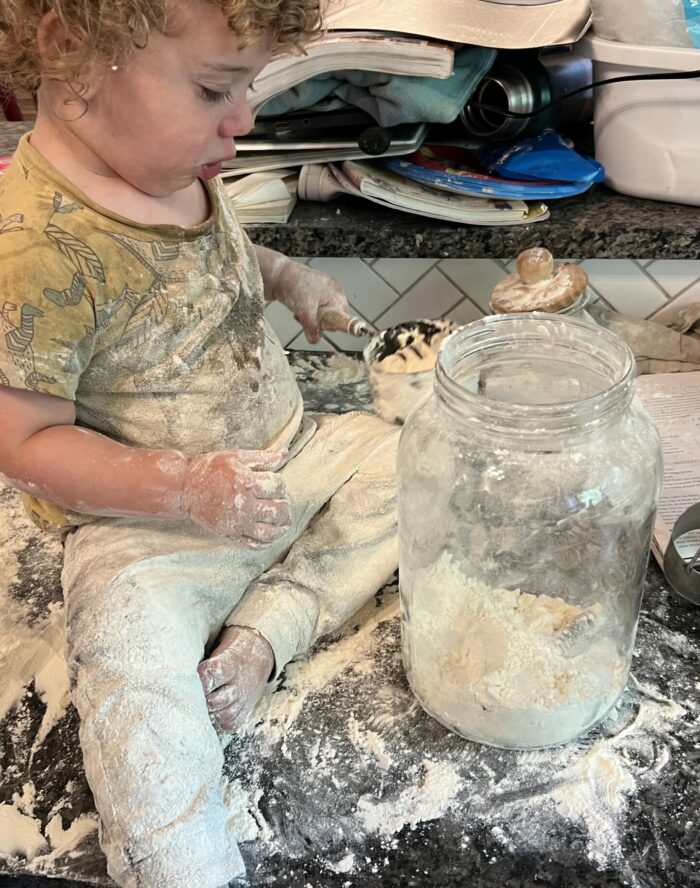 I’ll hand them a measuring cup and gently guide their hands as they dump flour into the bowl. They throw berries into batter. They hold the salt until it’s time to pour. They stir and sample far more than they help. 😉