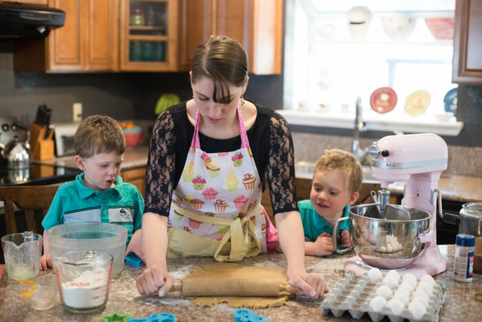 I love being in the kitchen experimenting, baking, and creating. So what do you do when you’ve got a 1-year-old, a 3-year-old, and a 5-year-old who just want to be wherever you are?